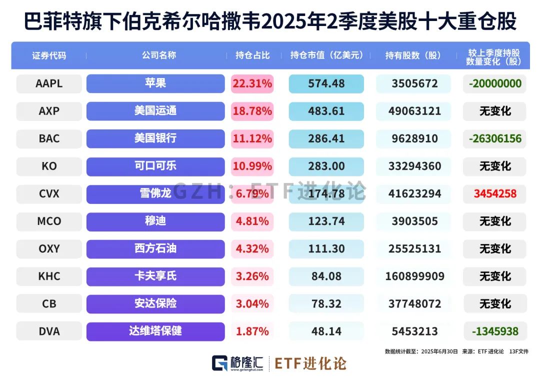 抑止二季度末,伯克希尔的好意思股握仓市值达到2575亿好意思元。前十大重仓股,分手为苹果、好意思国运通、好意思国银行、厚味可乐、雪佛龙、穆迪、西方石油、卡夫享氏、安达保障、达维塔保健,十大握仓占比达87%。